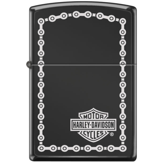 Zapalovač Zippo 26820 Harley-Davidson v elegantním provedení Ebony spojuje temný lesk s precizním laserovým zdobením. Čelní stranu zdobí detailně vylaserovaný motiv z kolekce Harley-Davidson, který na zrcadlově černém povrchu působí kontrastně a výrazně. Povrchová úprava Ebony dodává zapalovači luxusní vzhled, je vysoce leštěná a zaujme každého, kdo má smysl pro styl.
